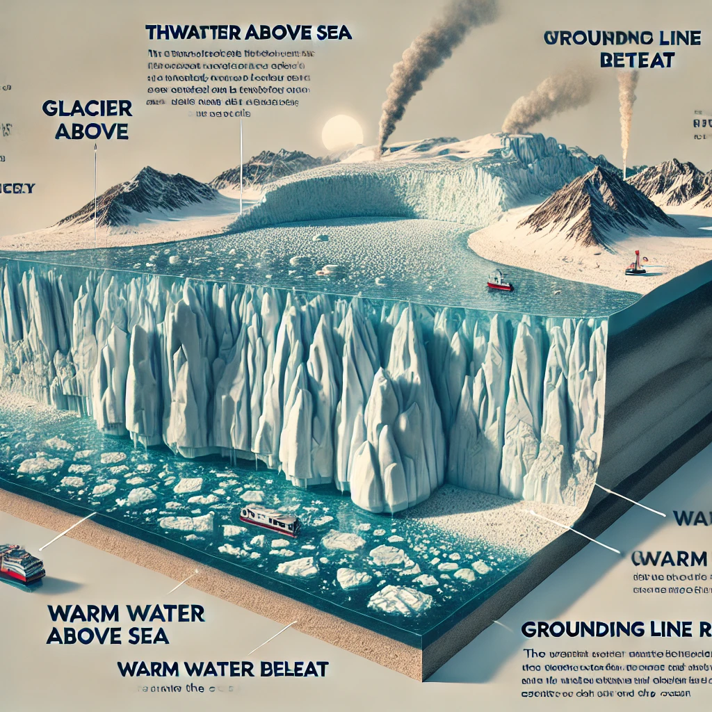 문제는 이 빙하가 해저 아래의 따뜻한 물에 의해 아래쪽부터 녹고 있다는 점입니다. 겉보기엔 거대한 얼음덩어리지만, 내부는 점점 더 취약해지고 있습니다.