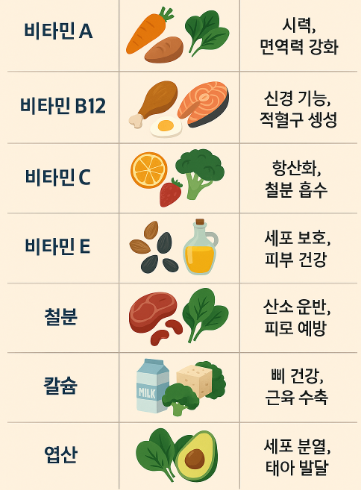 2. 🧬 주요 비타민과 미네랄의 대표 식품